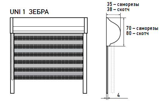 - Ткань разматывается внутри пространства штапика (между стеклом и направляющей)